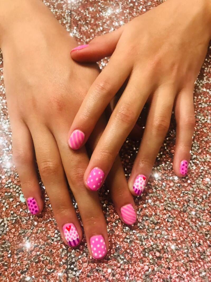 REALIZAMOS UNA APLICACION DE GEL SEMI PERMANENTE EN TONO ROSADOS CON DISEÑO DE CUP CAKE