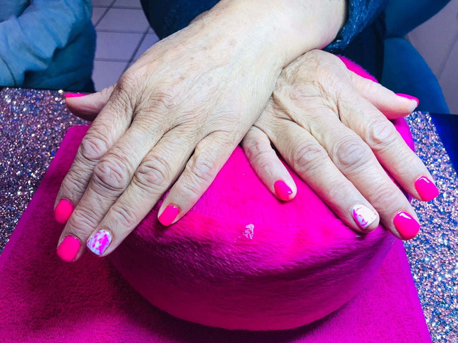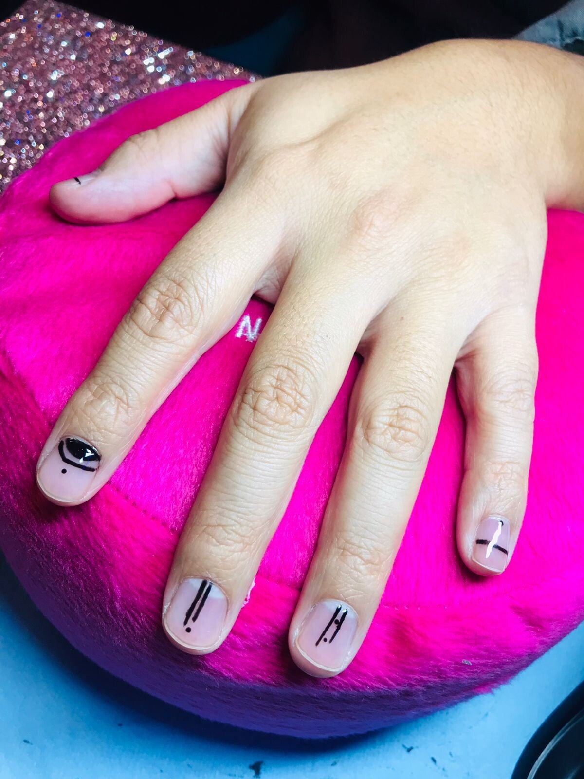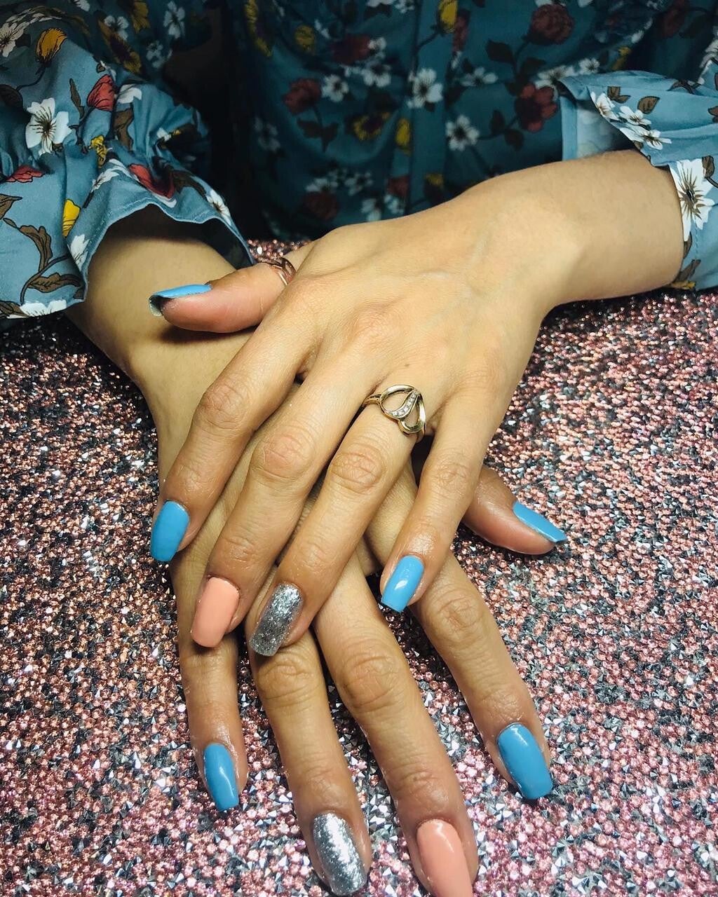 REALICE UN GELISH EN TONO AZUL CON UN TOQUE ROSADO, Y PARA QUE SE VEAN AUN MASS BONITAS UTILIZAMOS UN GLITTER PLATEADO.